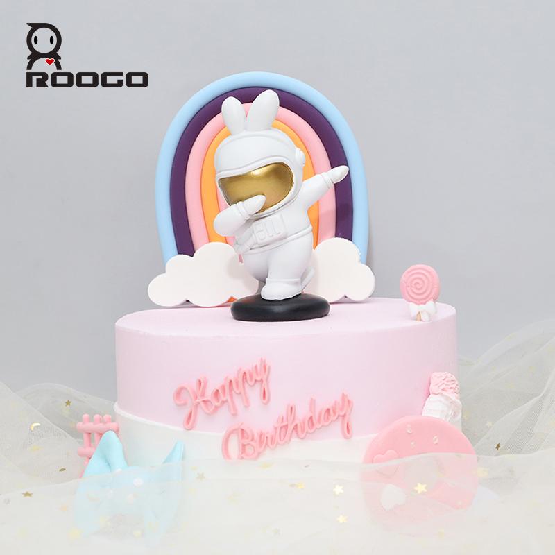 ROOGO Astronaut Rabbit Statues Cute Resin Home Decor Miniature Rabbit Ornaments Decorations For Desktop Car Cake