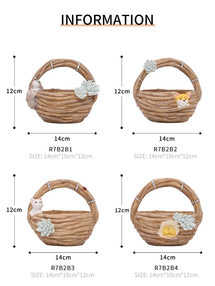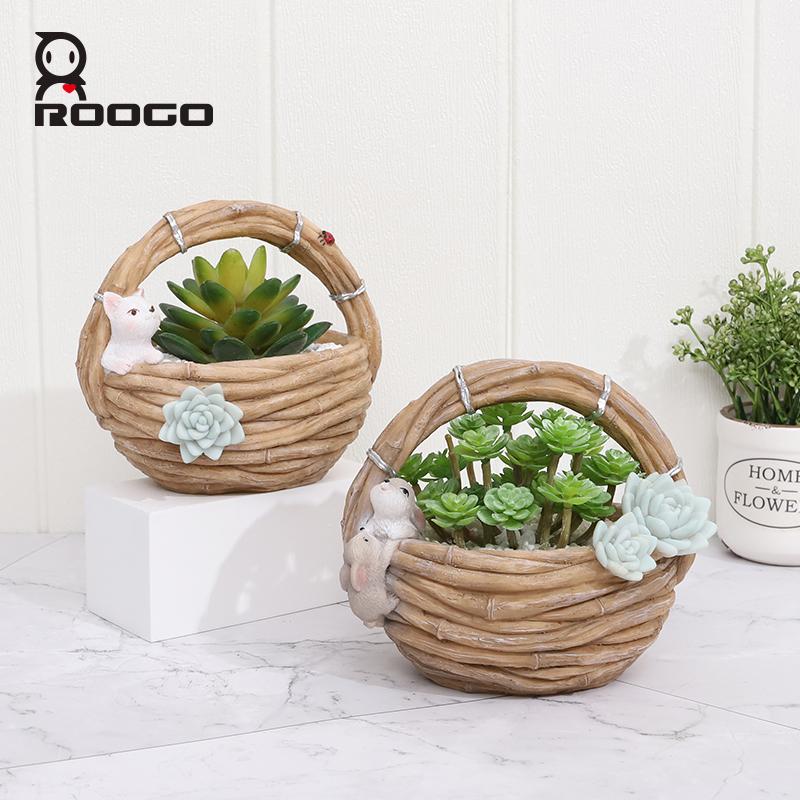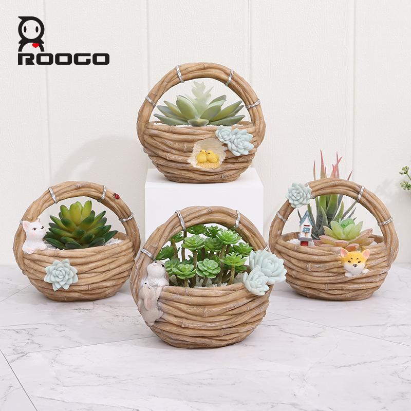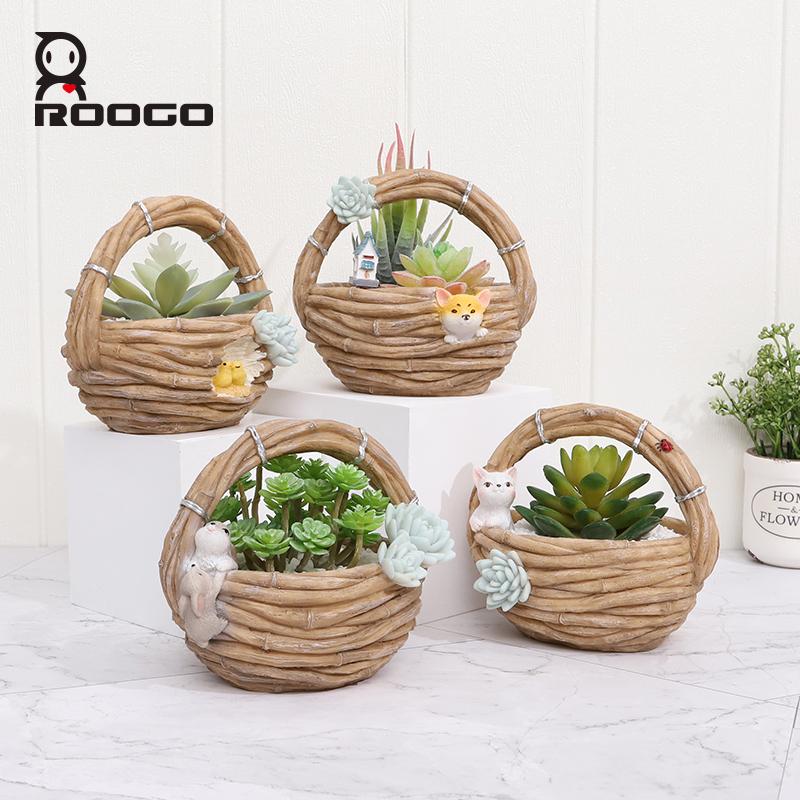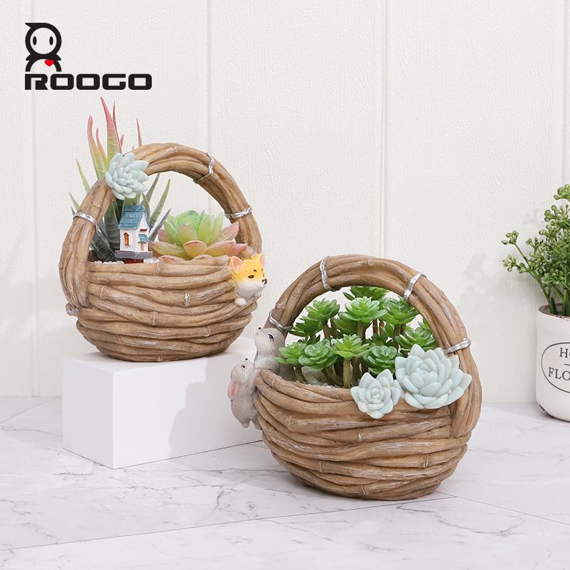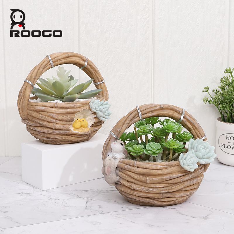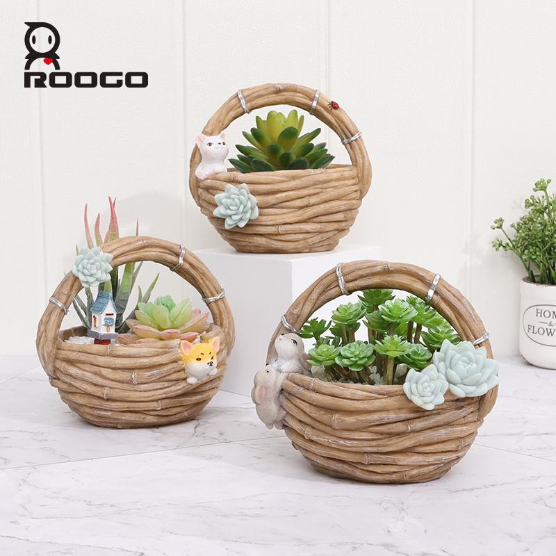 Specifications: Brand Name: Roogo Item Number: R7B2B0 Type: Flowerpot Material: Resin Style: Pastoral style Shape: imitation rattan basket Size: As shown Function: home garden decor/succulent pot/bonsai planter Tips: 1.Please allow 1-3mm differs due to manual measurement. 2.Due to the different monitor and light effect,the actual color maybe a slight different from the picture color.