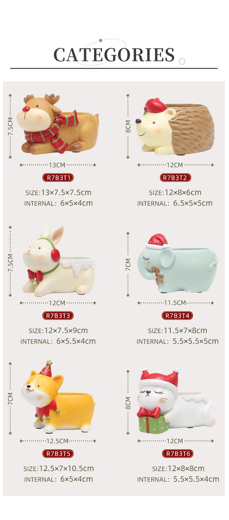 Specifications: Brand Name: Roogo Item Number: R7B3T0 Type: Flowerpot Material: Resin Style: Cartoon Theme: Animal Shape: reindeer/hedgehog/rabbit/elephant/corgi/cat Size: about 13.5*7.5*7.5cm Function: home garden decor/succulent pot/bonsai planter/Christmas decor Tips: 1.Please allow 1-3mm differs due to manual measurement. 2.Due to the different monitor and light effect,the actual color maybe a slight different from the picture color.