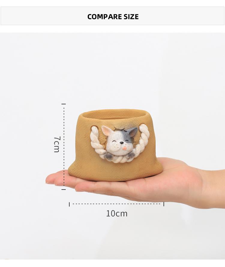 Specifications: Brand Name: Roogo Item Number: R7B3Y0 Type: Flowerpot Material: Resin Style: Cartoon Shape: storage bag Size: about 9.5*8*10cm Function: home garden decor/succulent pot/bonsai planter Tips: 1.Please allow 1-3mm differs due to manual measurement. 2.Due to the different monitor and light effect,the actual color maybe a slight different from the picture color.