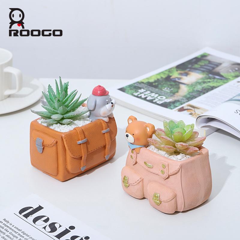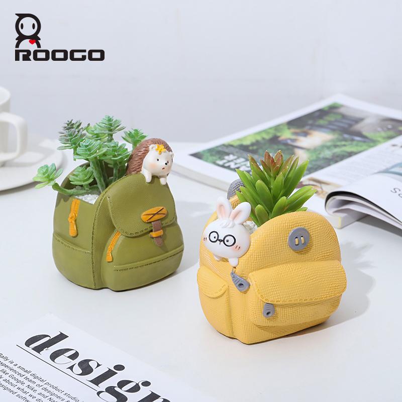 ROOGO Creative School Bags Shape Succulent Plant Pot Resin Cactus Bonsai Planter Kawaii Flowerpots for Home Garden Decor