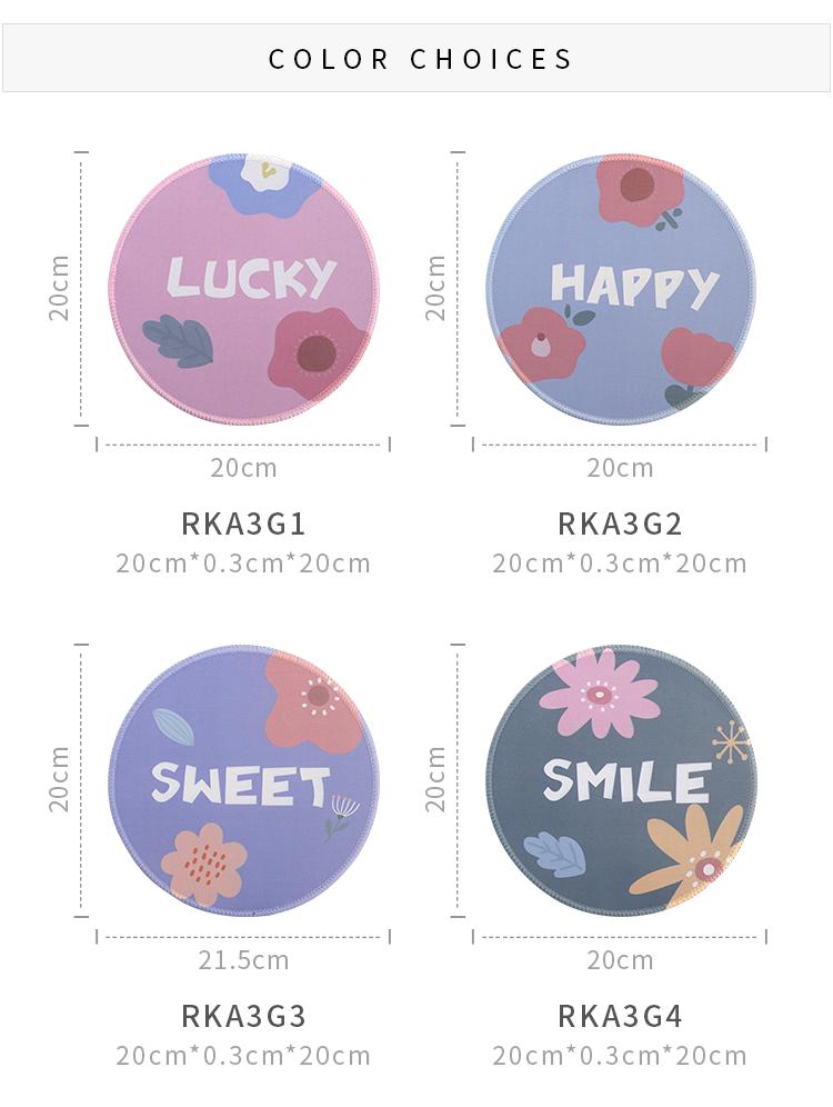 Specifications: Brand Name: Roogo Item Number: RKA3G0 Type: Mouse pad Material: rubber & cloth Theme: flower Shape: round Size: about 20*20*0.3cm Occasion: desktop Tips: 1.Please allow 1-3mm differs due to manual measurement. 2.Due to the different monitor and light effect,the actual color maybe a slight different from the picture color.