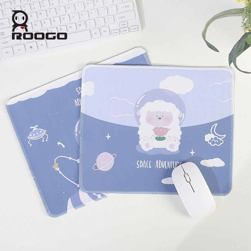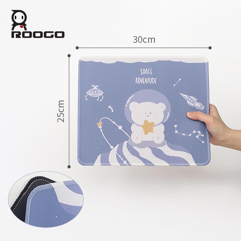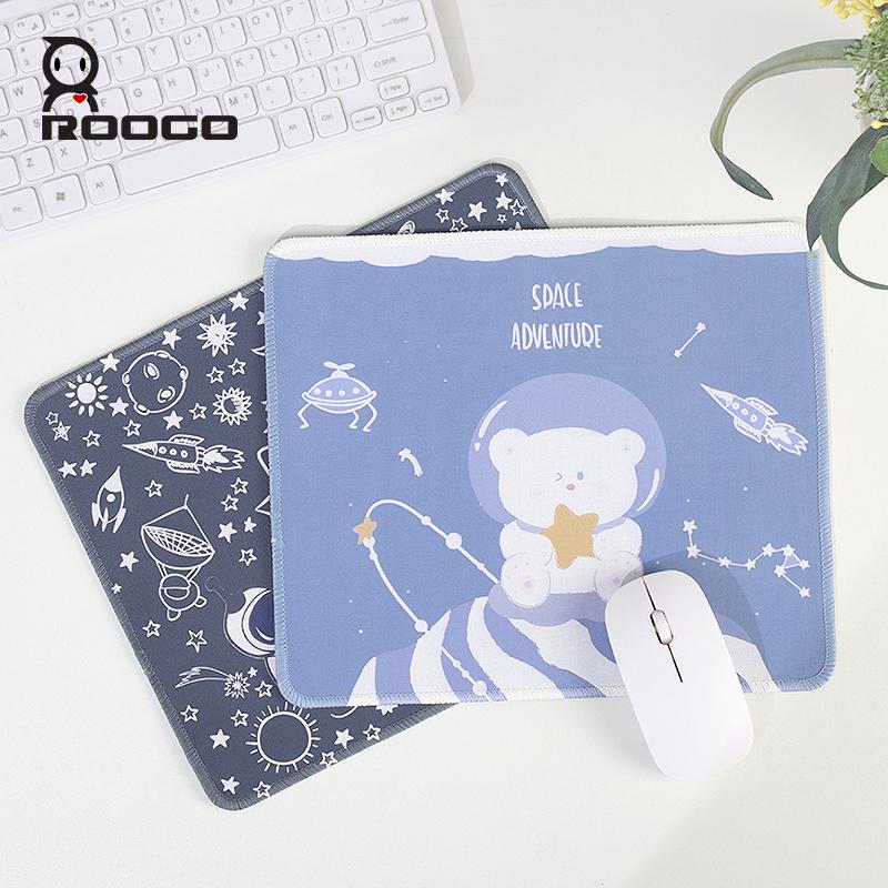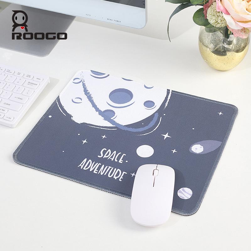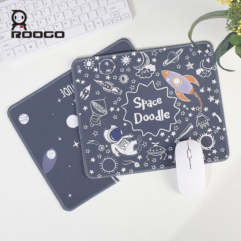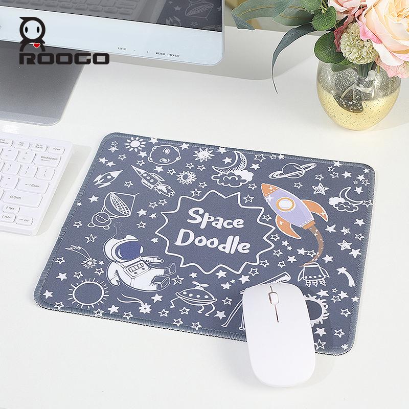 ROOGO卡通長方形滑鼠墊用於筆記型電腦柔軟舒適墊子有趣的太空圖案防滑橡膠桌墊