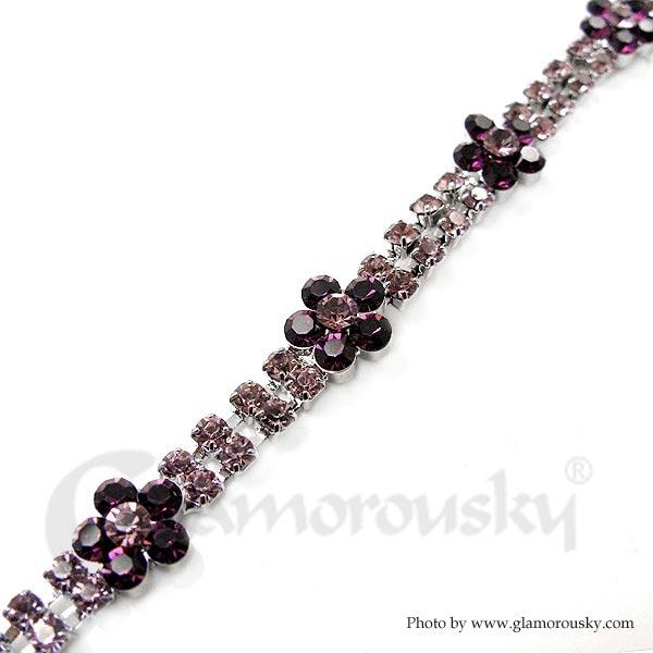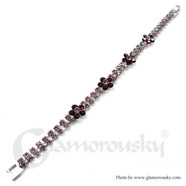 Elegant Flower Bracelet with Purple Austrian Element Crystal