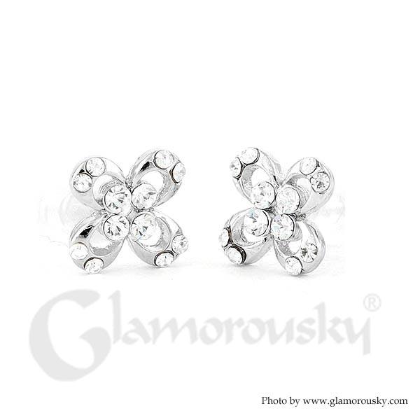 Trendy Flower Earrings with Silver Austrian Element Crystals