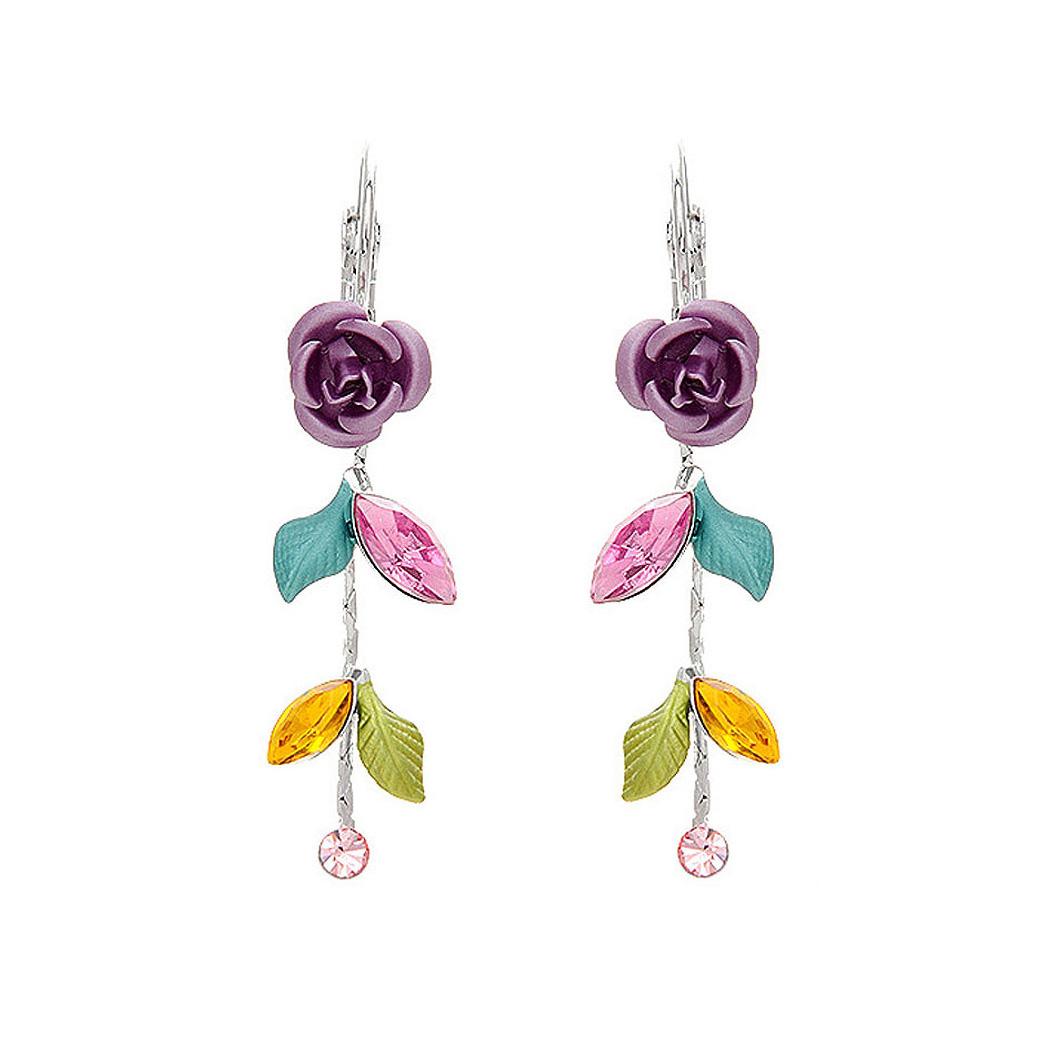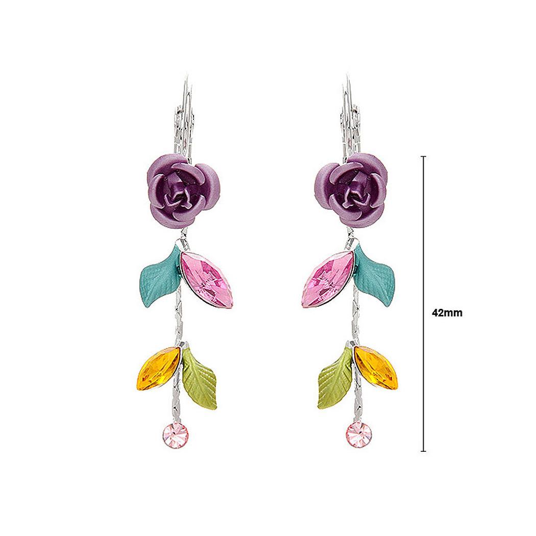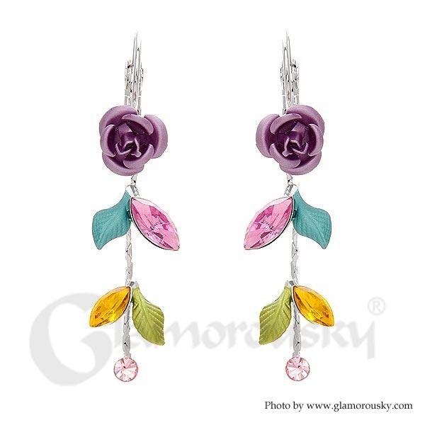 Violet Rose Earrings with Multi-color Austrian Crystals and Crystal Glass