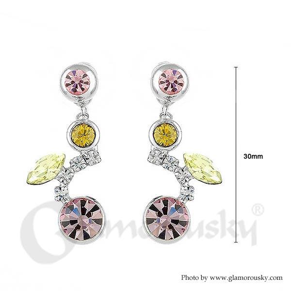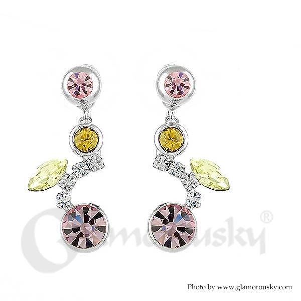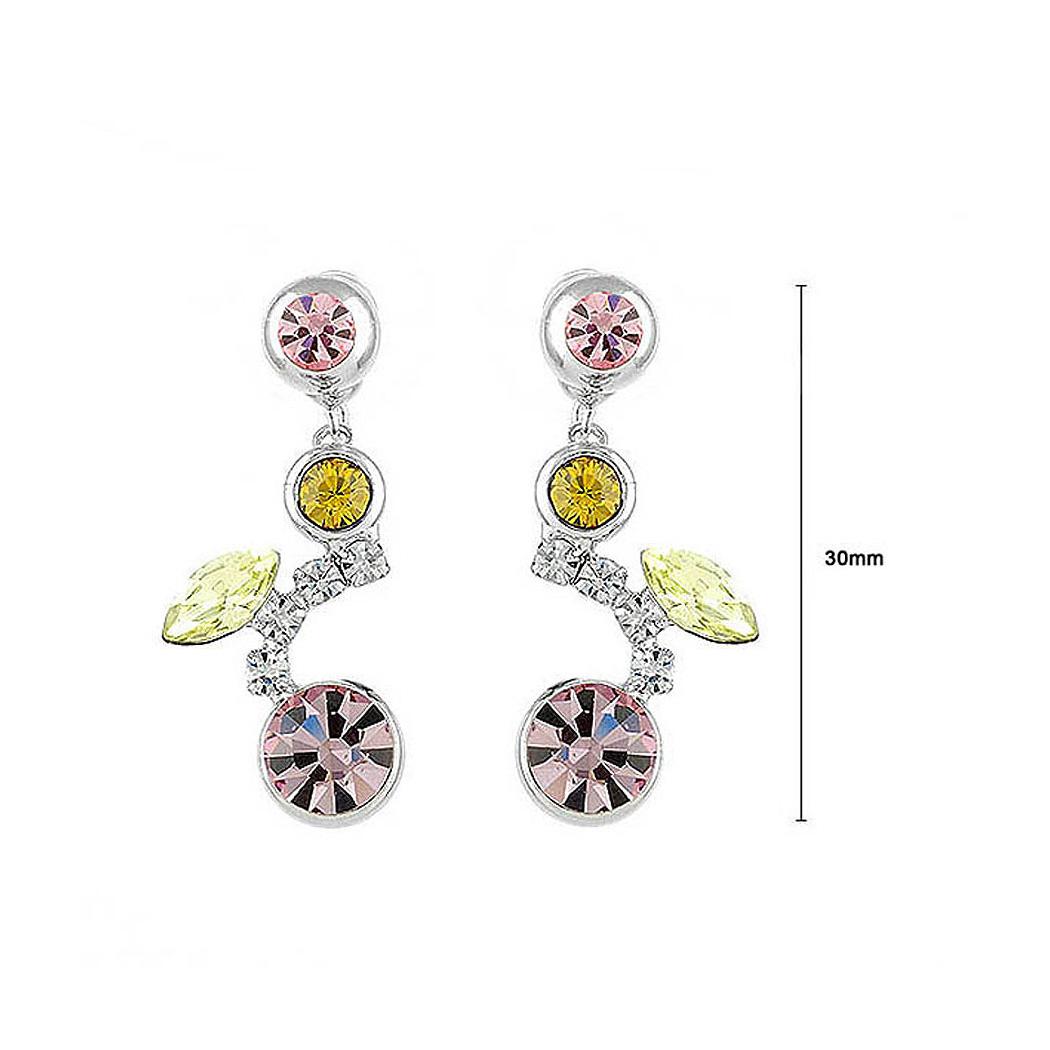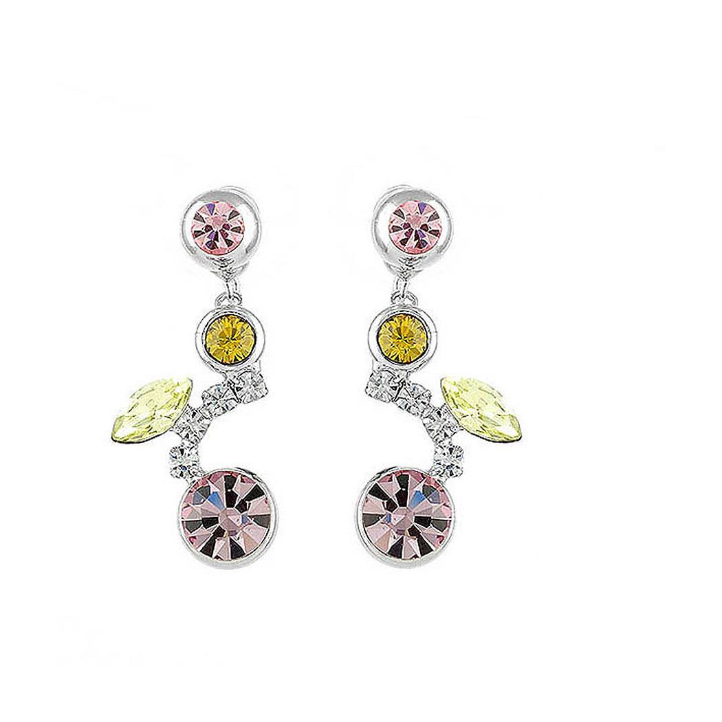 Cherry Earrings with Silver Austrian Element Crystals and Multi Color CZ Beads