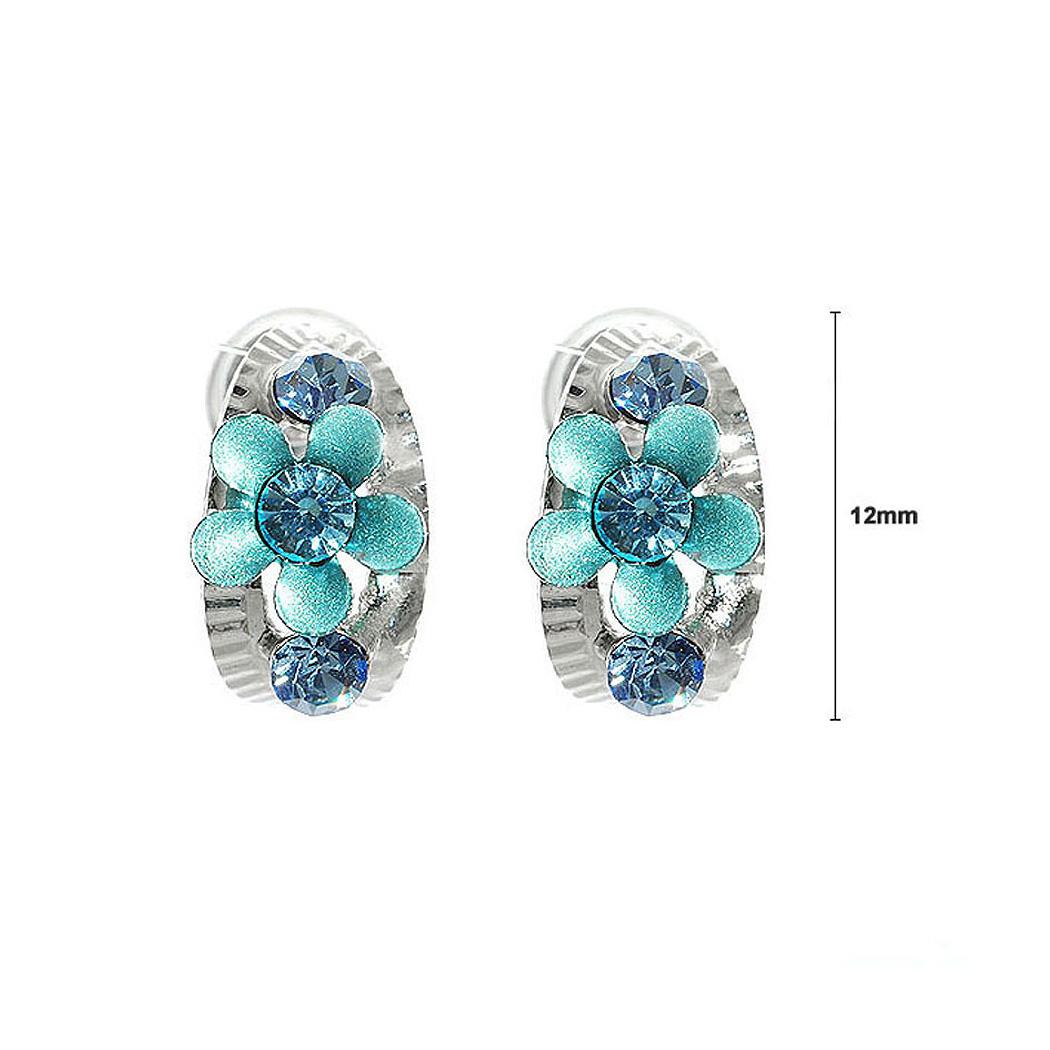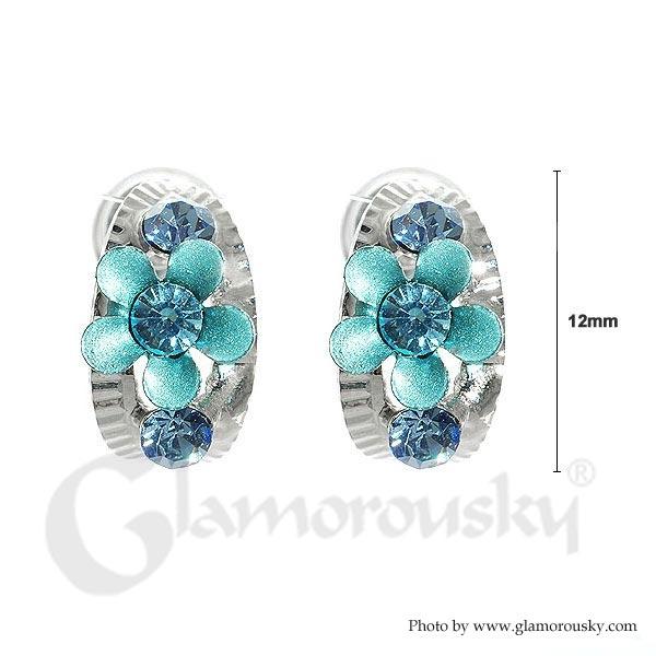 Flower on Curved Leaf Earrings with Blue Austrian Element Crystals