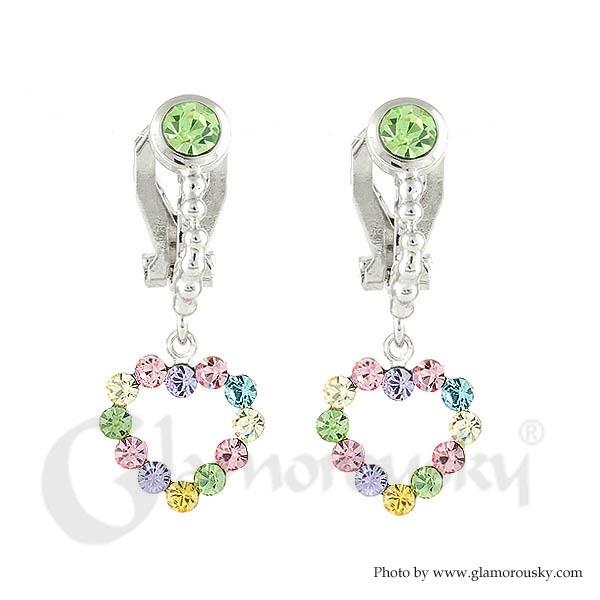 Swaying Heart Earrings with Multi Color Austrian Element Crystals (Clipping)