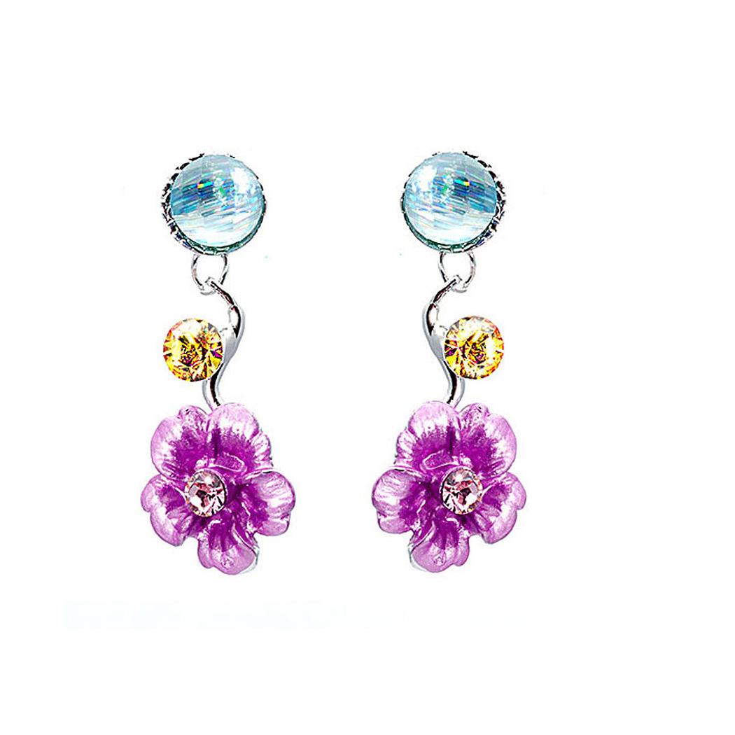Reddish Purple Flower Earrings with Austrian Element Crystals and Czech Crystal Bead