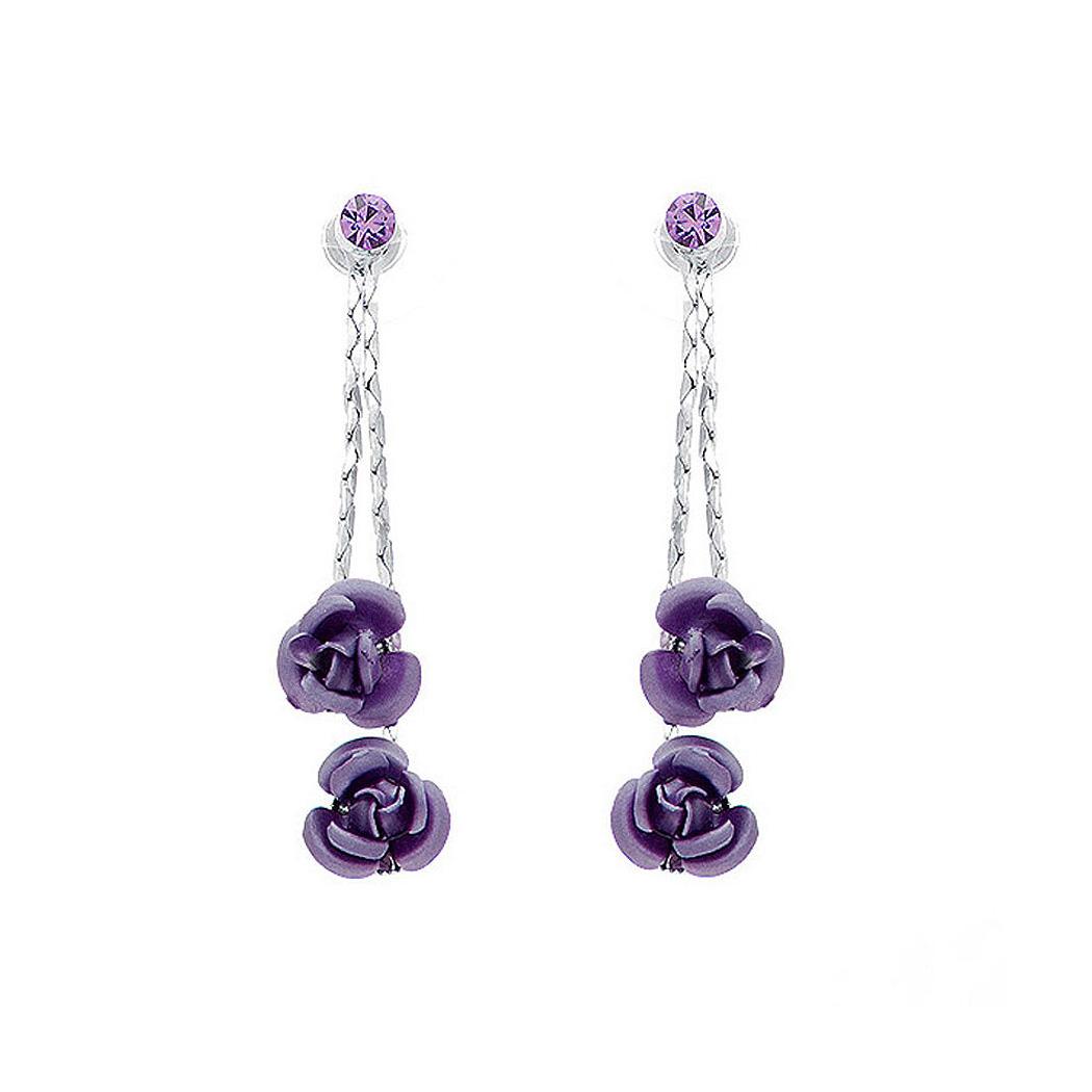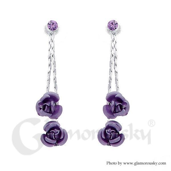 Purple Rose Earrings with Purple Austrian Element Crystals