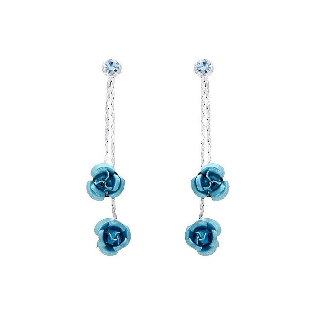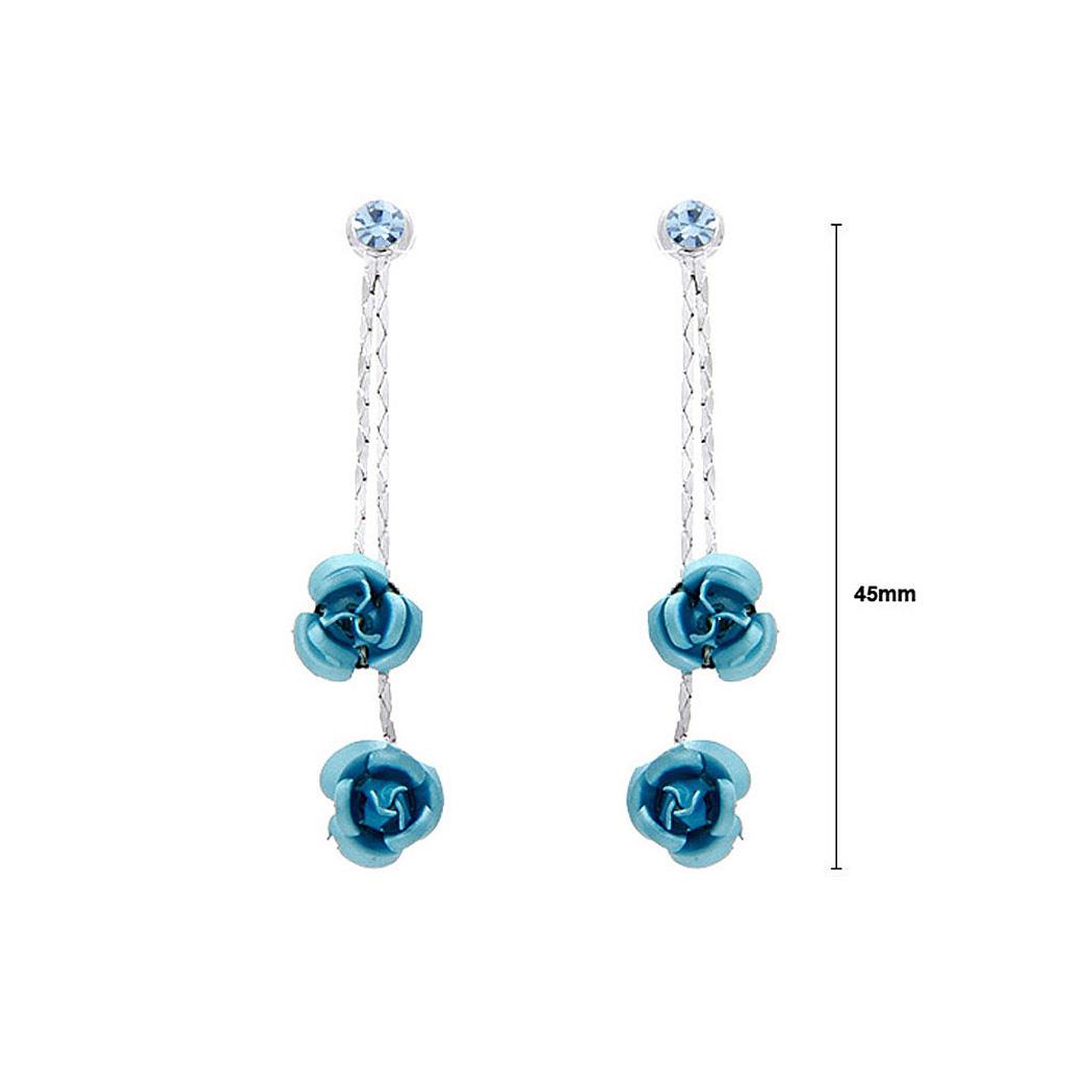 Blue Rose Earrings with Blue Austrian Element Crystals