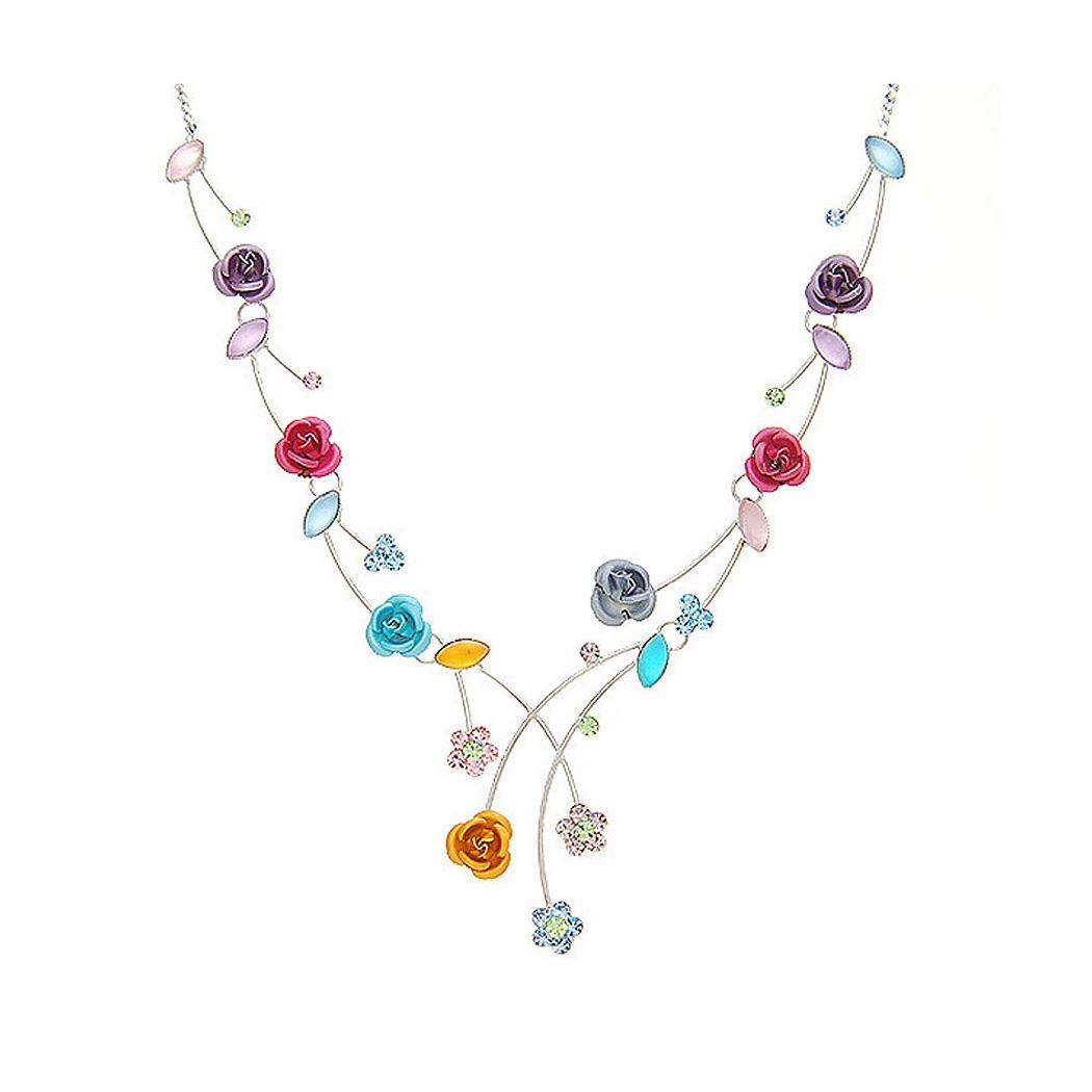 Multi-color Rose Necklace with Multi-color Austrian Crystals