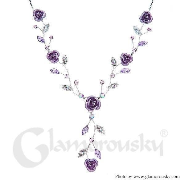Violet Rose Necklace with Violet Austrian Crystals and Crystal Glass