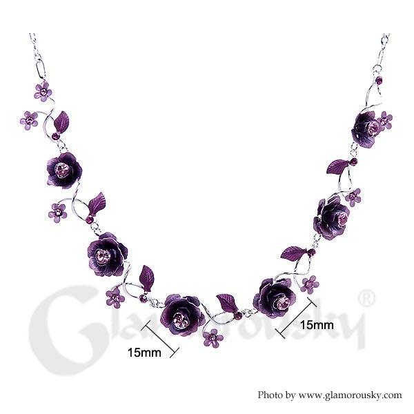 Elegant Rose Necklace with Purple Austrian Element Crystals