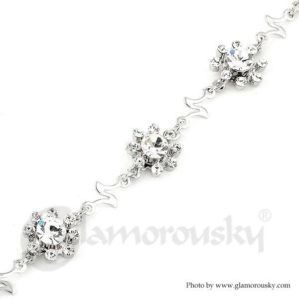 Wavy Flower Bracelet with Silver Austrian Element Crystals