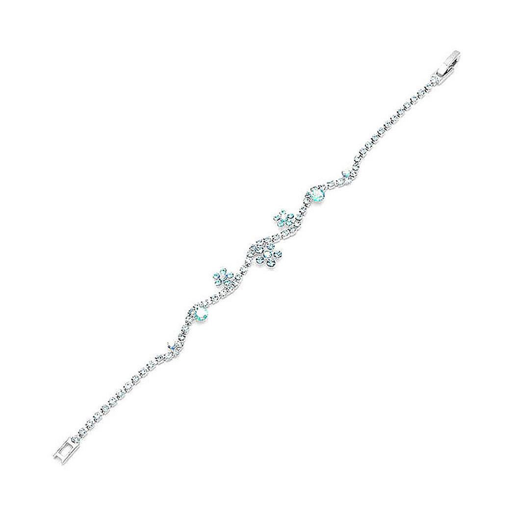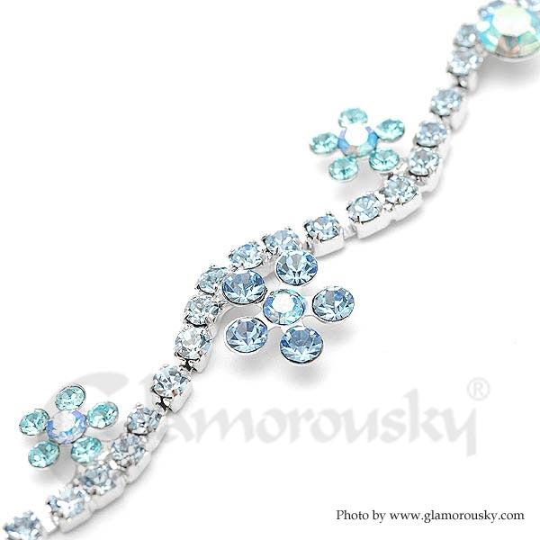 Wavy Flower Bracelet with Blue Austrian Element Crystals and Crystal Glass