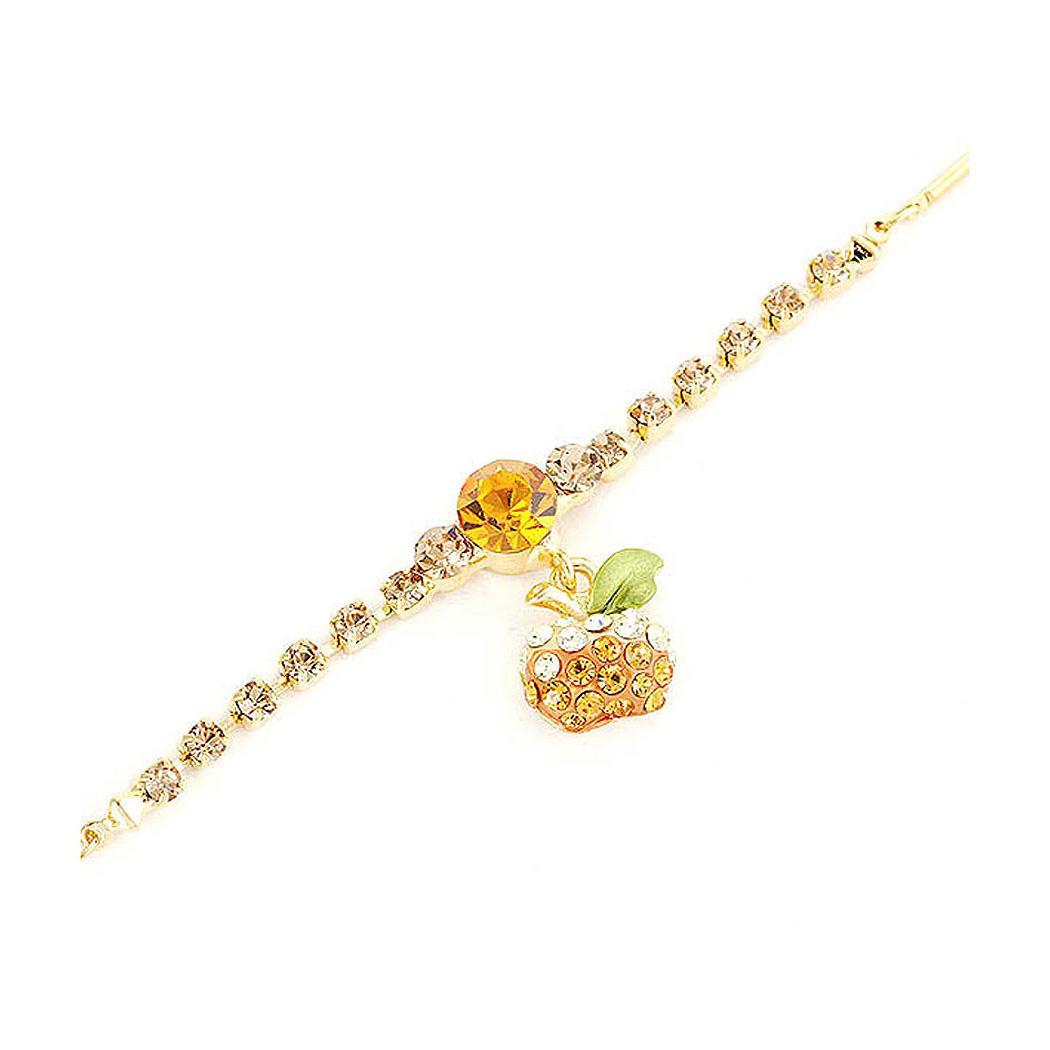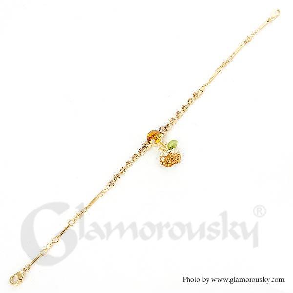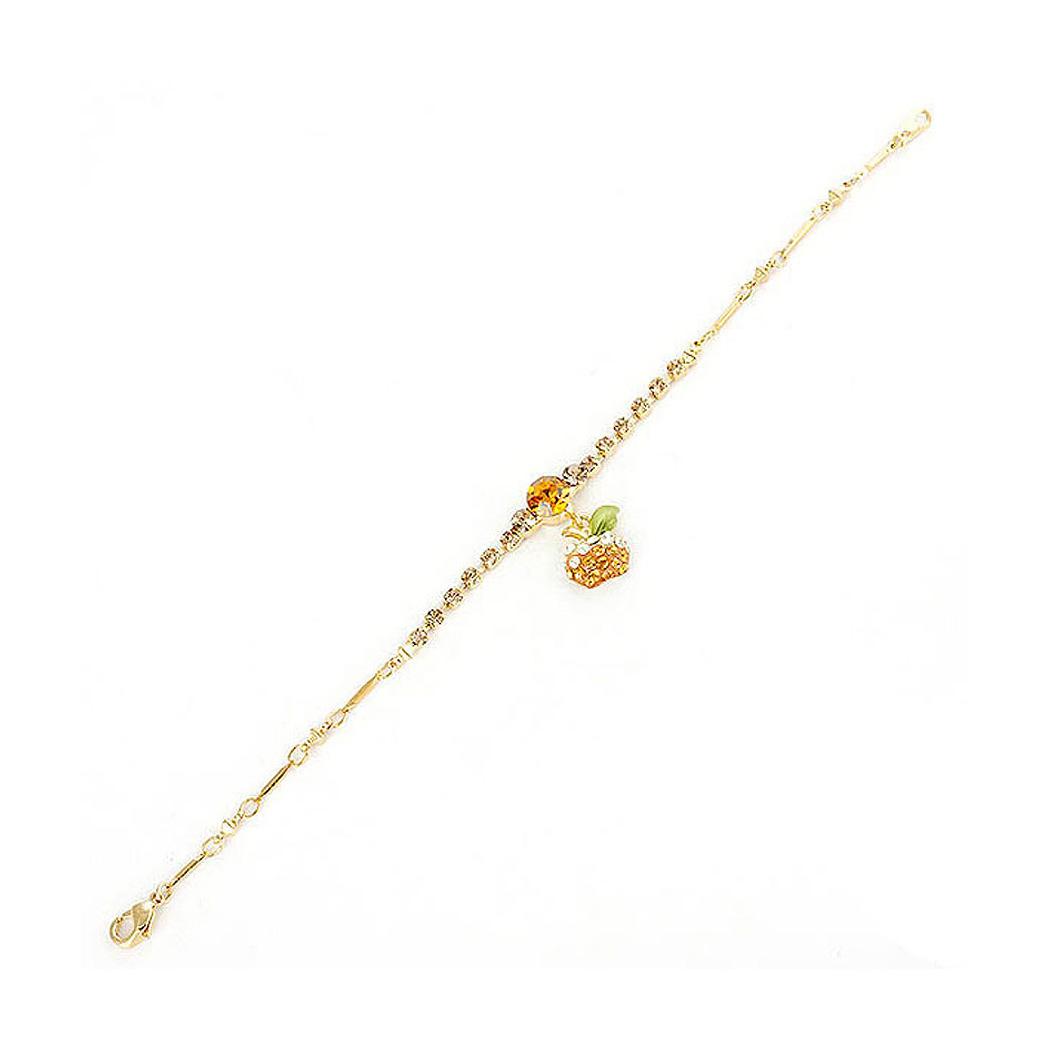 Fancy Bracelet with Golden Apple Charm in Orange and Silver Austrian Element Crystals