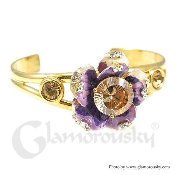 Category:BangleCollection:Love in FlowersMetail:Silver-Plated Pewter(Golden)Stone:CZ(Orange)