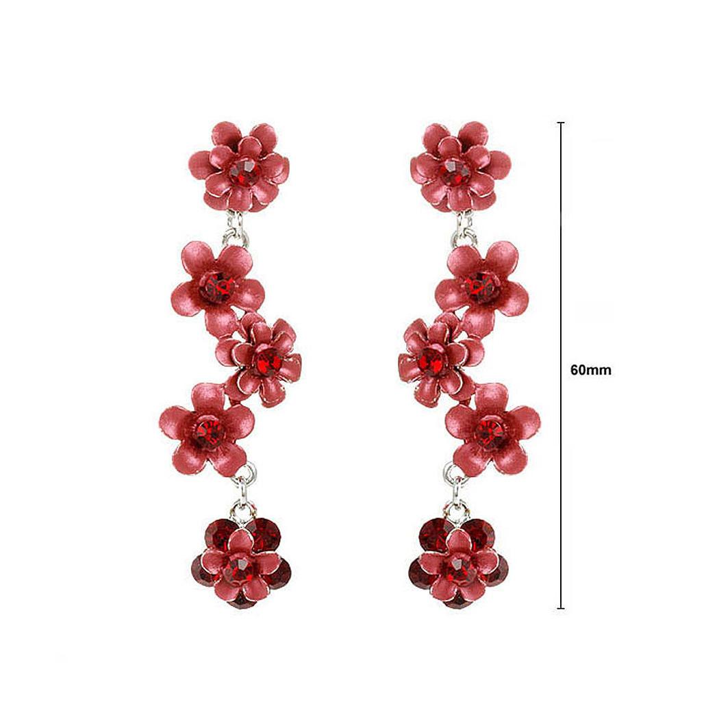 Flowery Earrings with Red Austrian Element Crystals