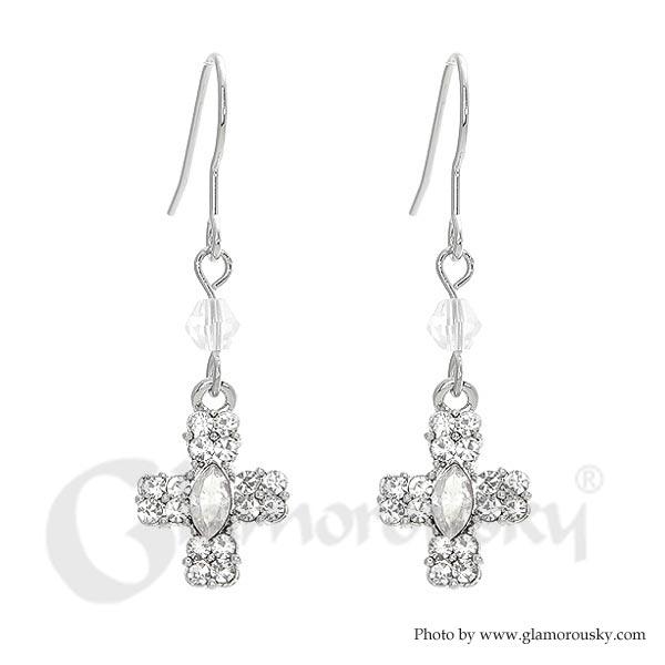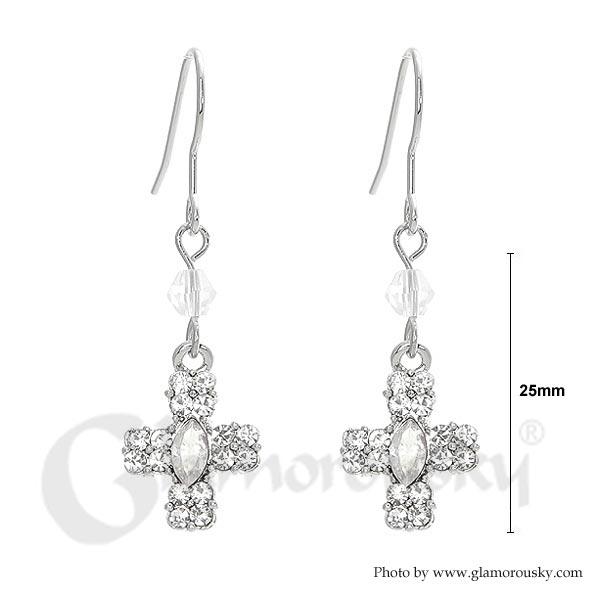 Glistening Cross Earrings with Silver Austrian Element Crystals