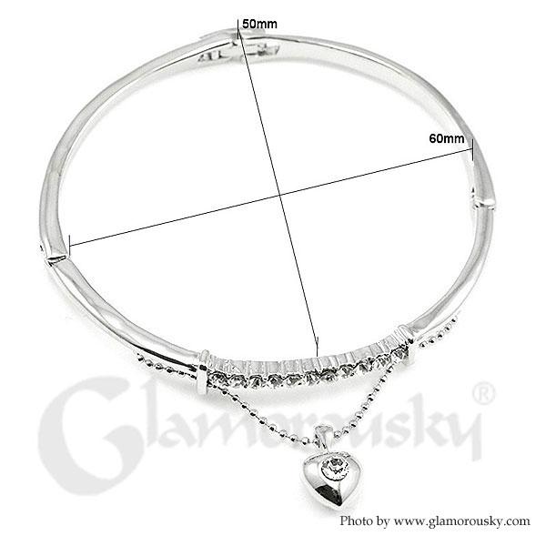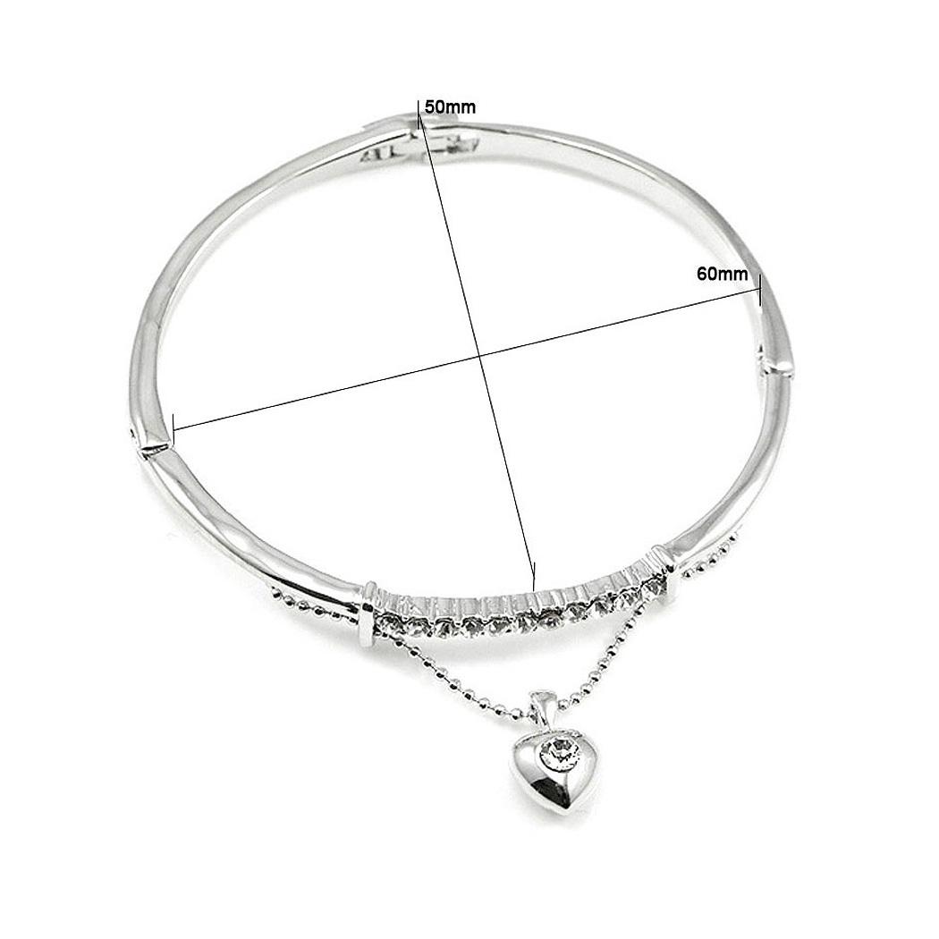 Elegant Bangle with Silver Austrian Element Crystal and Heart Charm