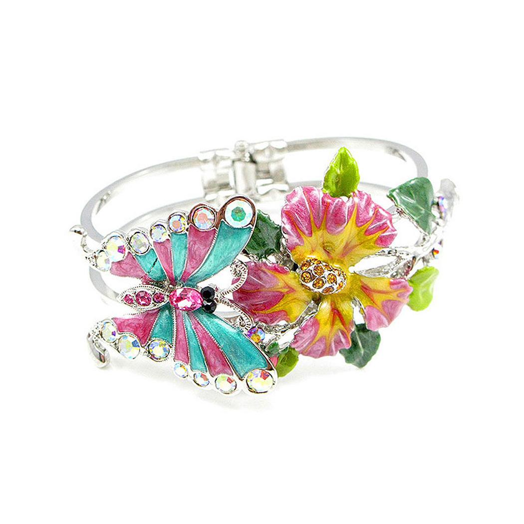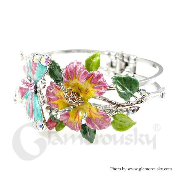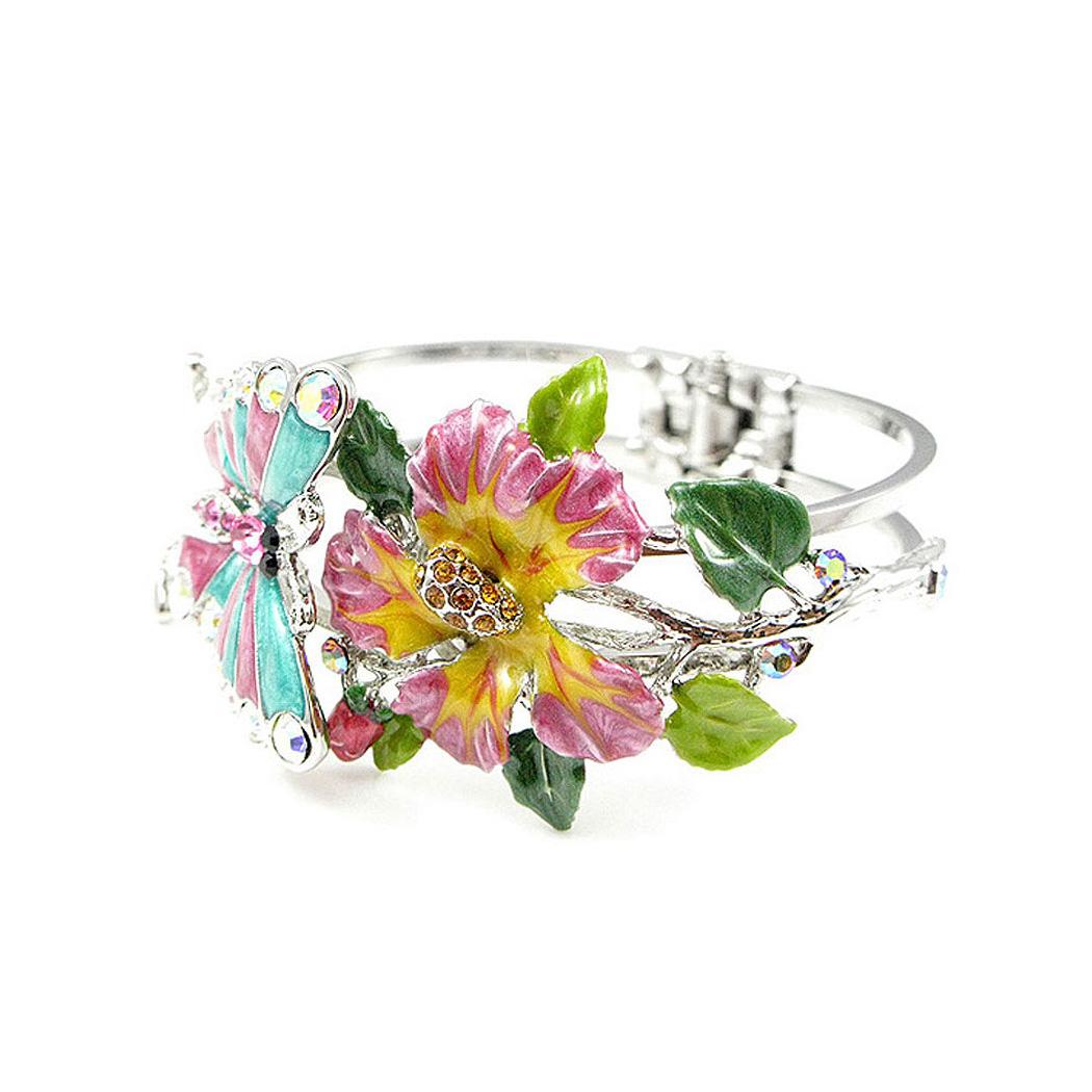 Category:BangleCollection:Flower NymphMetail:Silver-Plated Pewter(Silver)Stone:Austrian Crystal(Multi Colors)