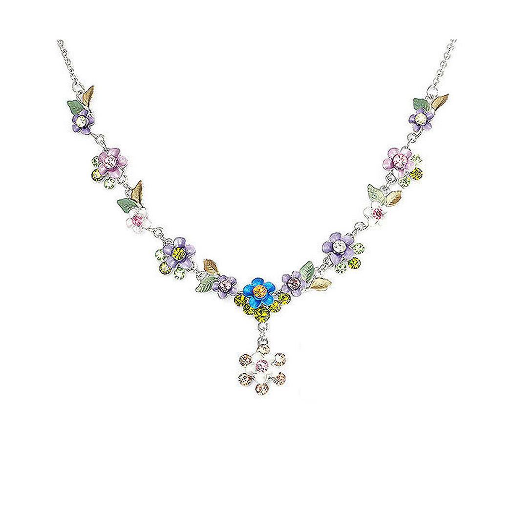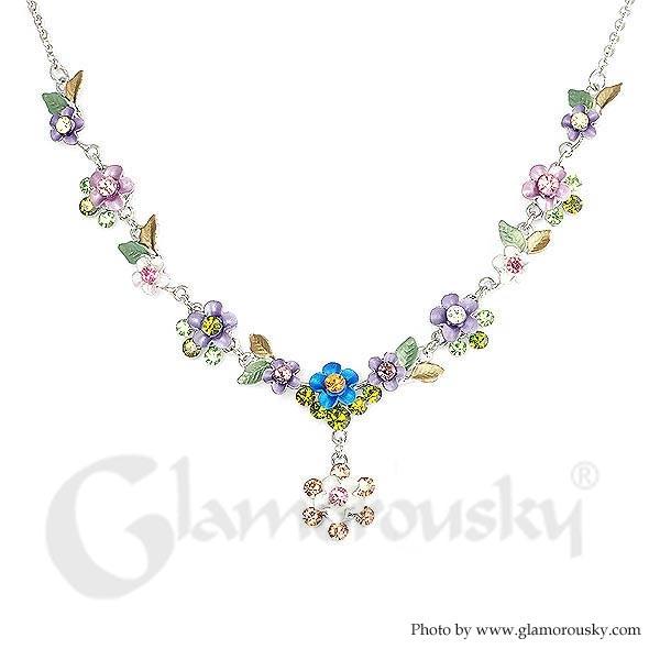 Colorful Flower Necklace with Multi-color Austrian Element Crystals