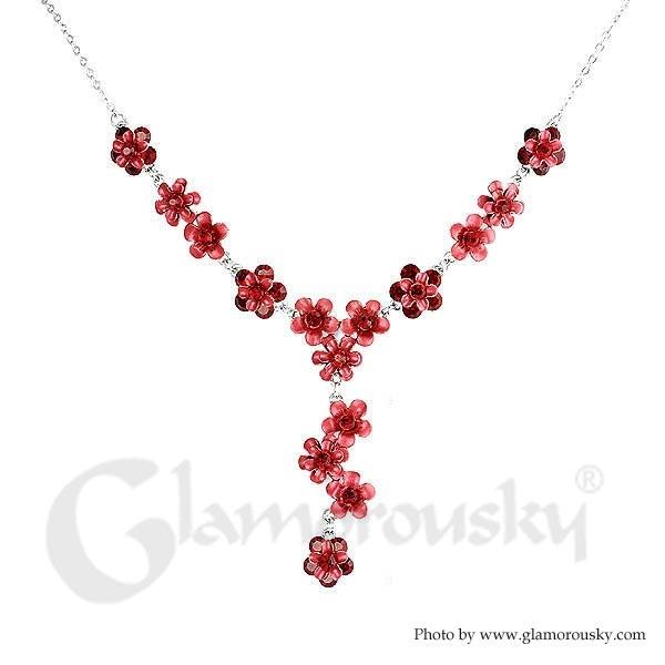 Flowery Necklace with Red Austrian Element Crystals