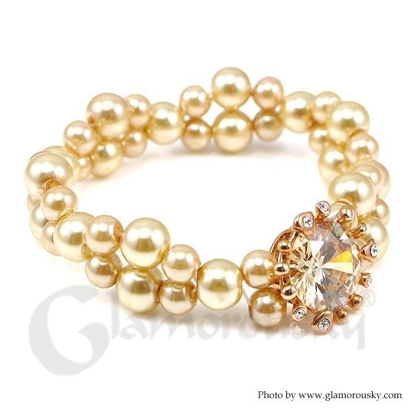 Fancy Fashion Pearl Bracelet with Gold Austrian Element Crystal