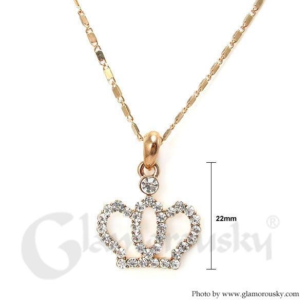 Glistering Crown Pendant with Silver Austrian Element Crystals and Necklace