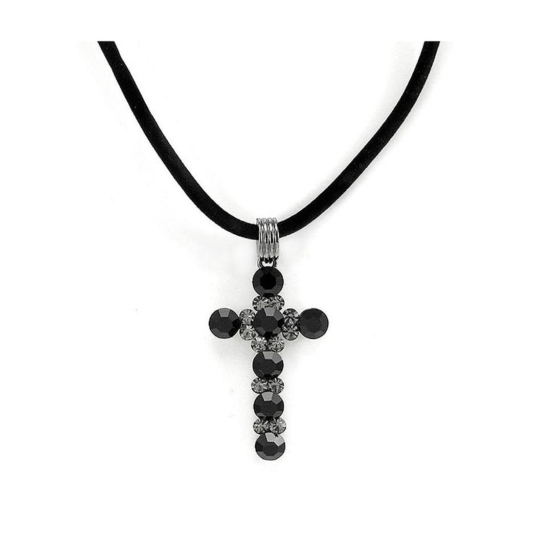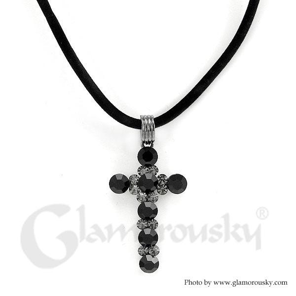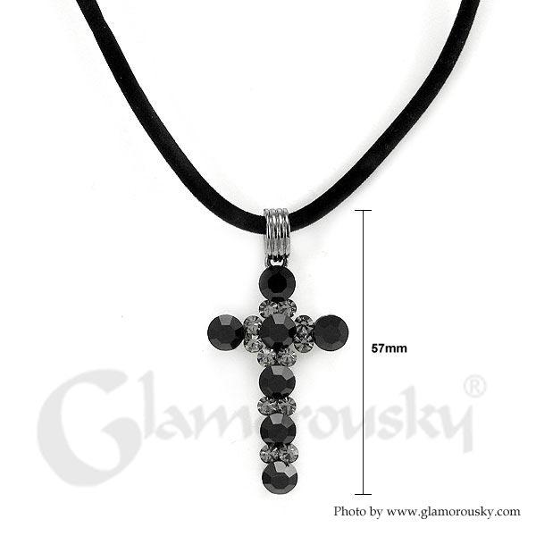 Category:PendantCollection:Banquet EleganceMetail:Silver-Plated Pewter(Black)Stone:Austrian Crystal(Grey)