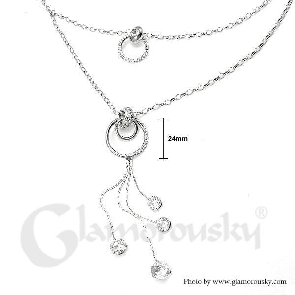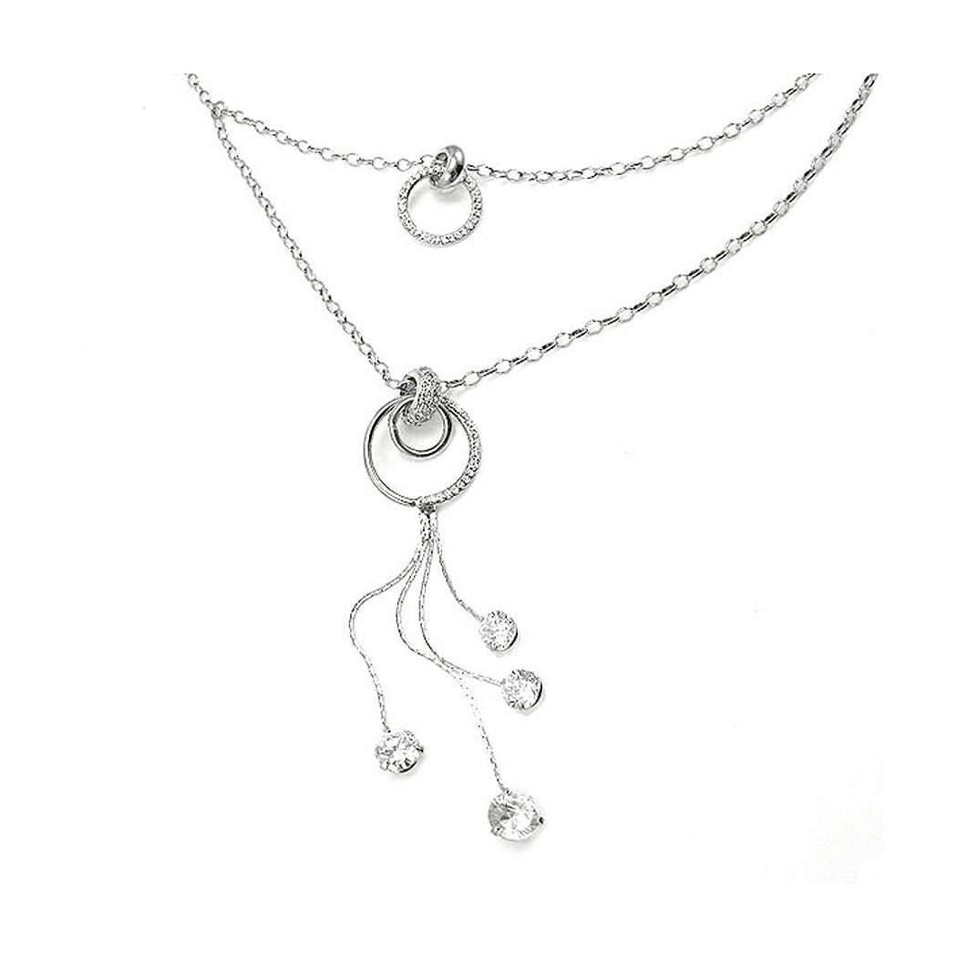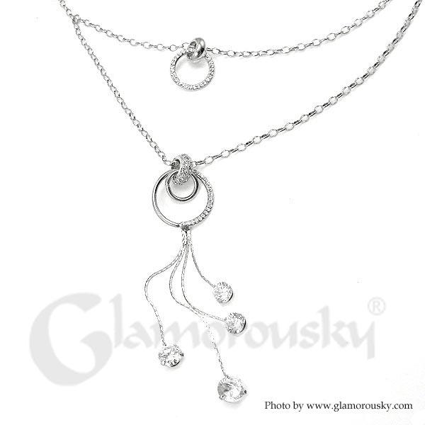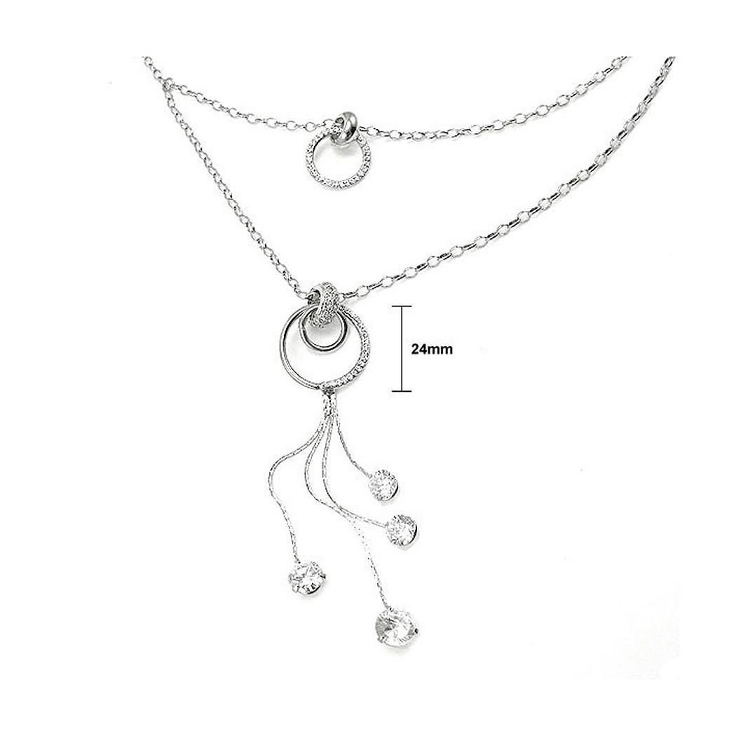 Glistering Circular Necklace with Tassels, Silver Austrian Element Crystals and CZ