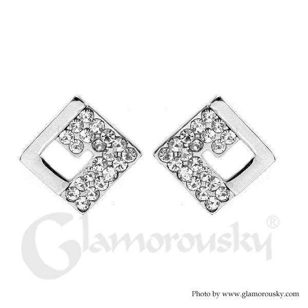 Glistering Rectangle Earrings with Silver Austrian Element Crystals