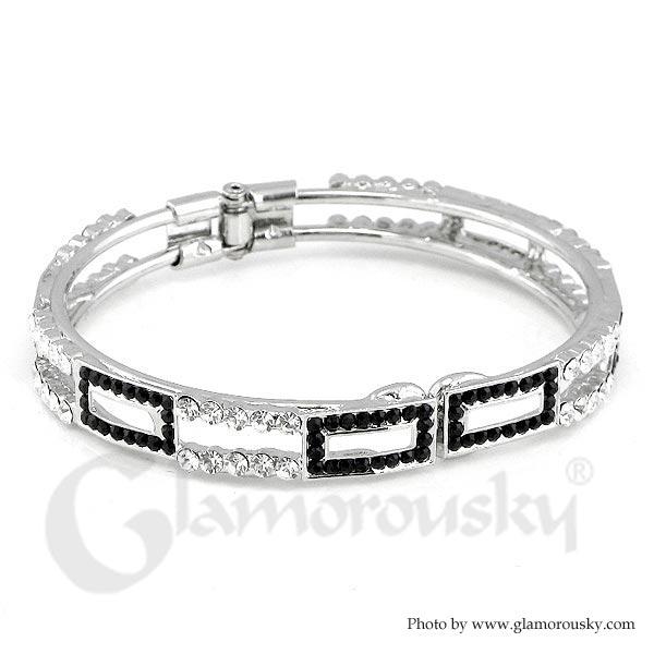 Elegant Bangle with Black and Silver Austrian Element Crystal