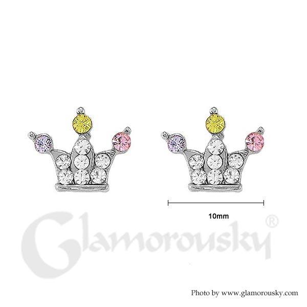 Elegant Crown Earrings with Multi-colour Austrian Element Crystals