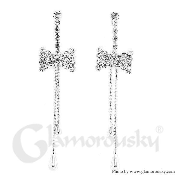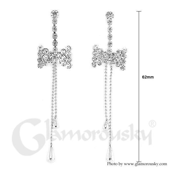 Dazzling Ribbon Earrings with Silver Austrian Element Crystal