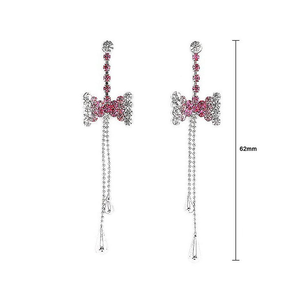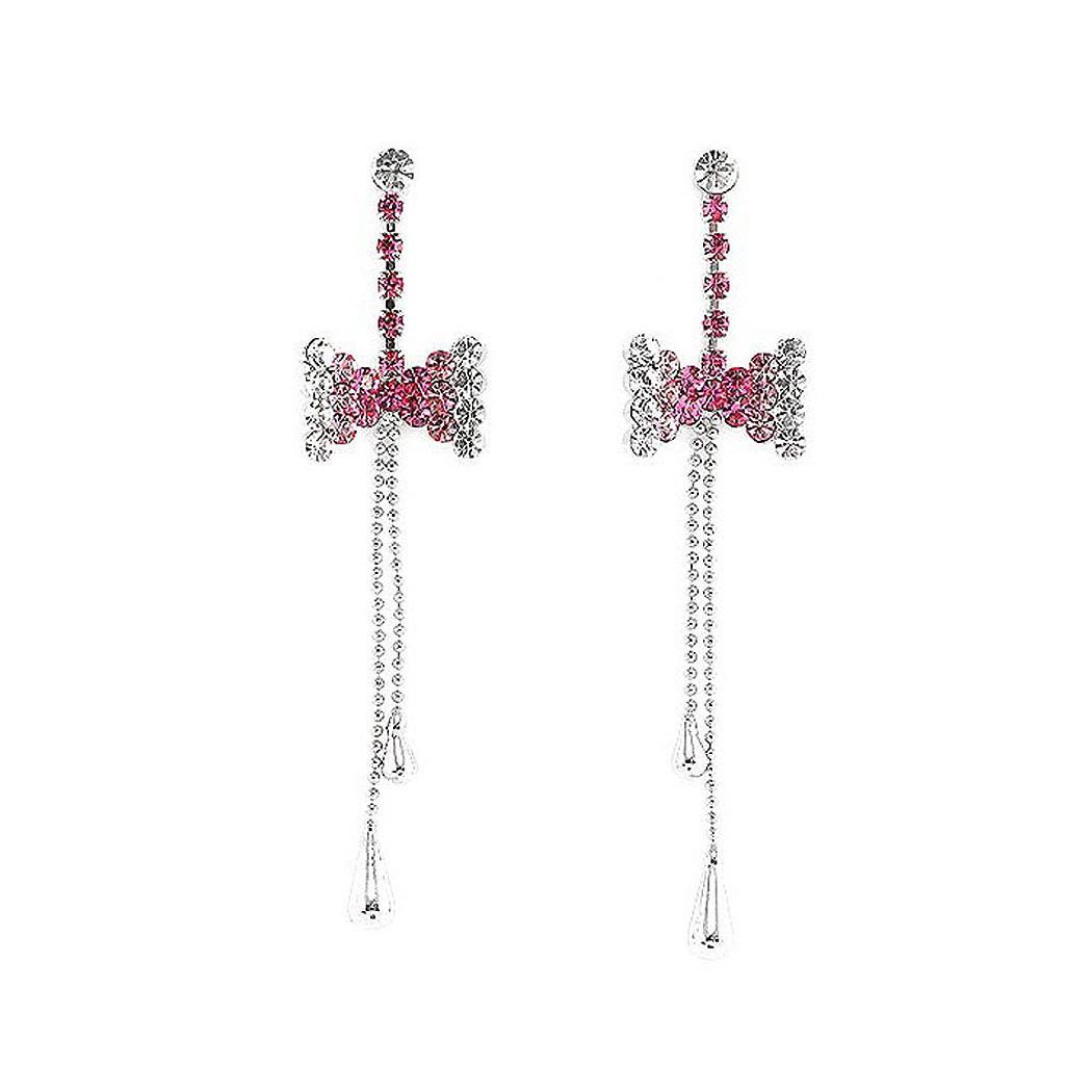 Dazzling Ribbon Earrings with Silver and Pink Austrian Element Crystals
