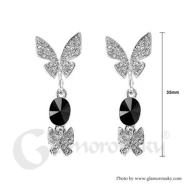 Category:Pair EarringsCollection:Flower NymphMetail:Silver-Plated Pewter(Silver)Stone:Austrian Crystal(Black)