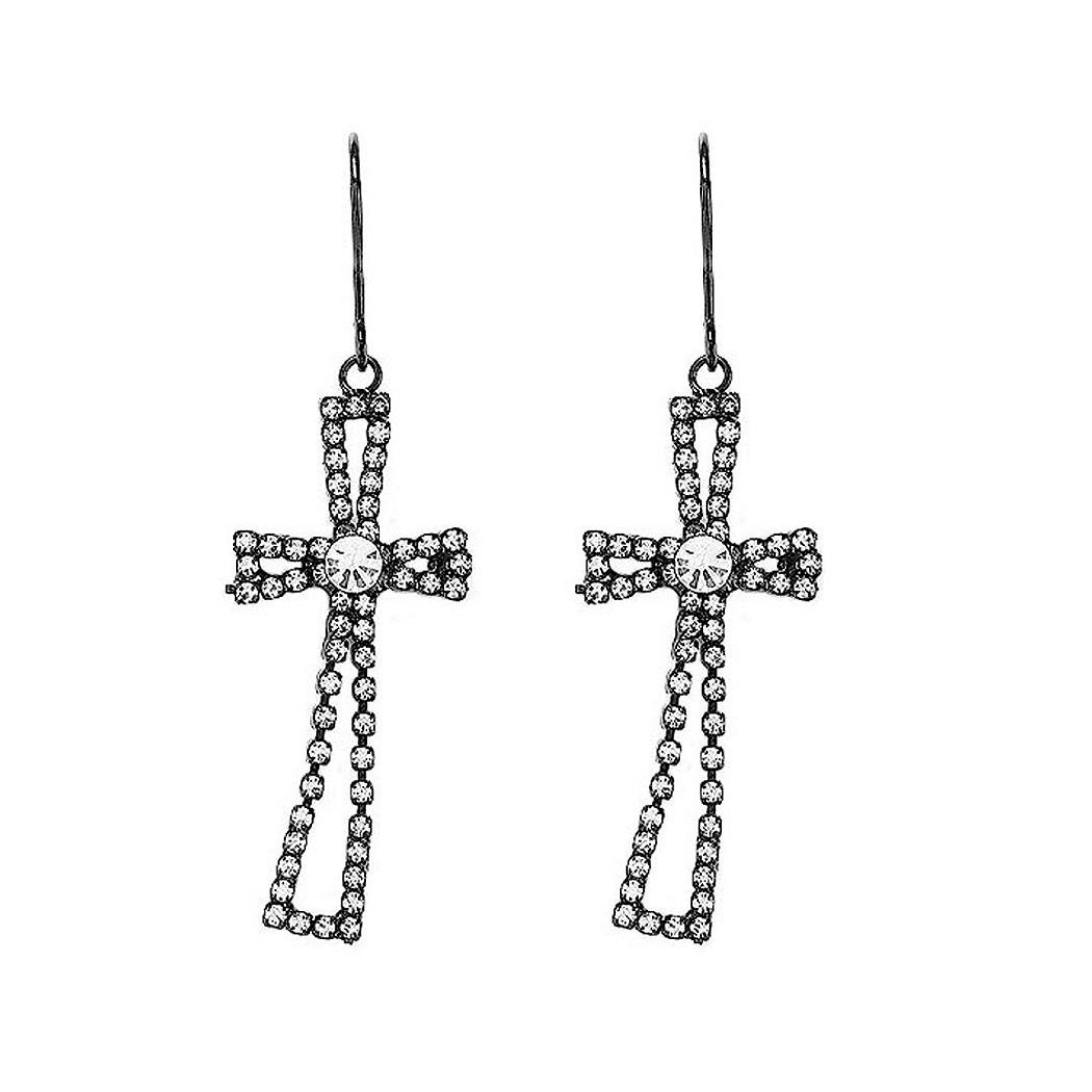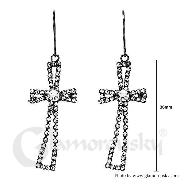 Dazzling Cross Earrings with Silver Austrian Element Crystal