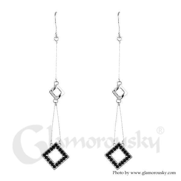 Elegant Earrings with Black Austrian Element Crystal