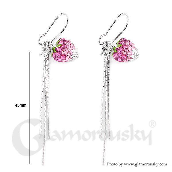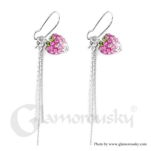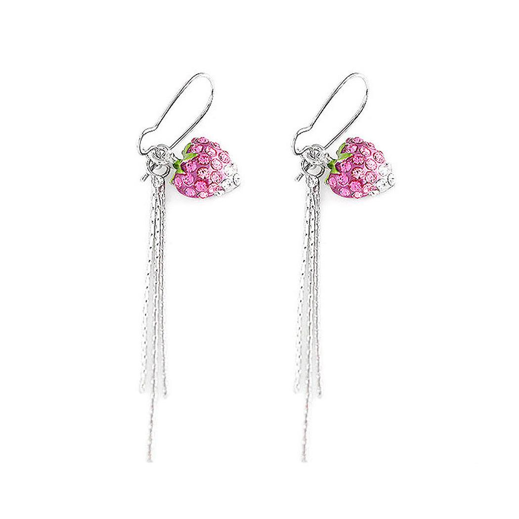 Dazzling Strawberry Earrings with Silver and Pink Austrian Element Crystals