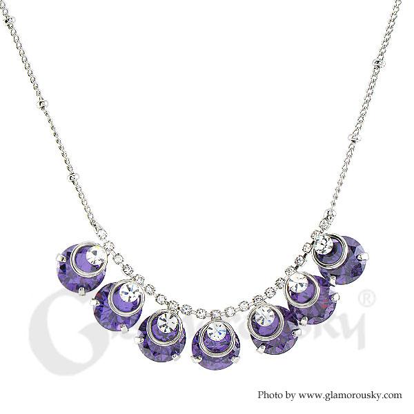 Glimmering Necklace with Silver and Purple Austrian Element Crystals