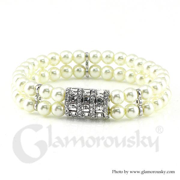 Fancy Bead Bracelet with Silver Austrian Element Crystals