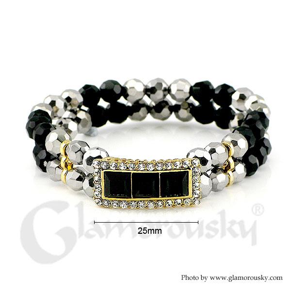 Fancy Bead Bracelet with Silver and Black Austrian Element Crystals