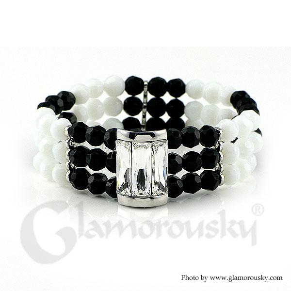 Fancy Bead Bracelet with Silver Austrian Element Crystals