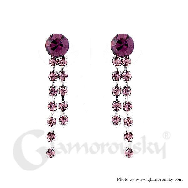 Elegant Earrings with Tassols and Purple Austrian Element Crystals