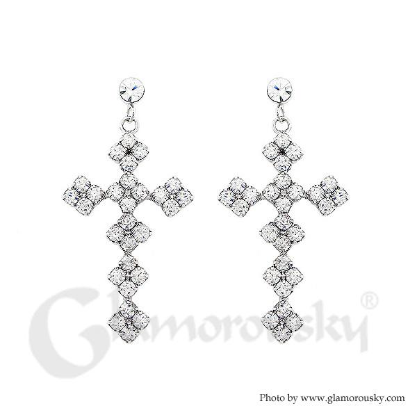 Graceful Cross Earrings with Silver Austrian Element Crystal