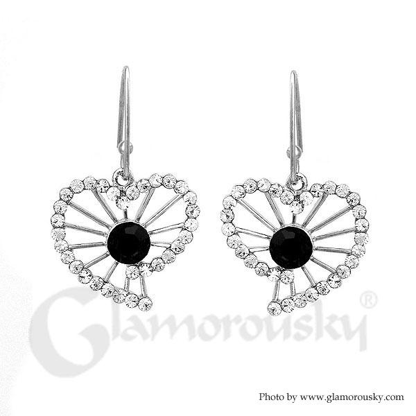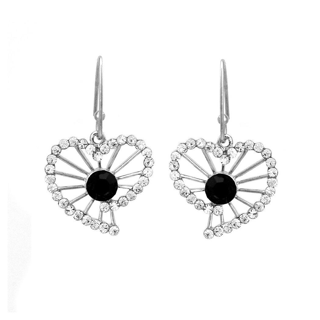 Trendy Heart Earrings with Silver and Black Austrian Element Crystals
