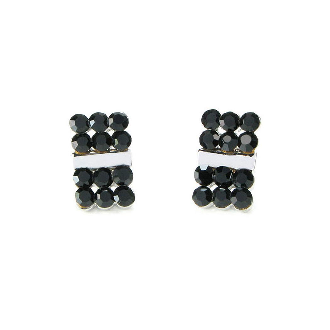 Elegant Ribbon Earrings with Black Austrian Element Crystal